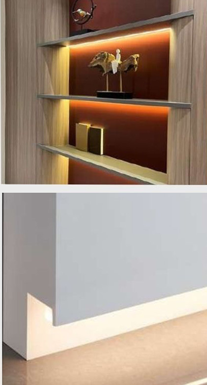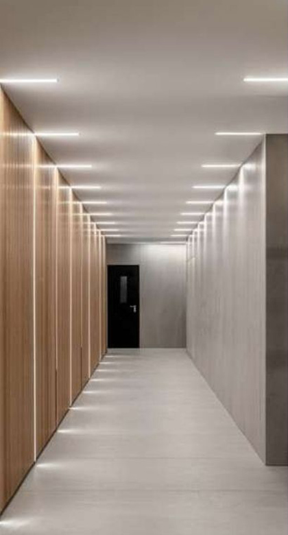 LED systems are discreetly integrated into panels, recesses, and architectural details.